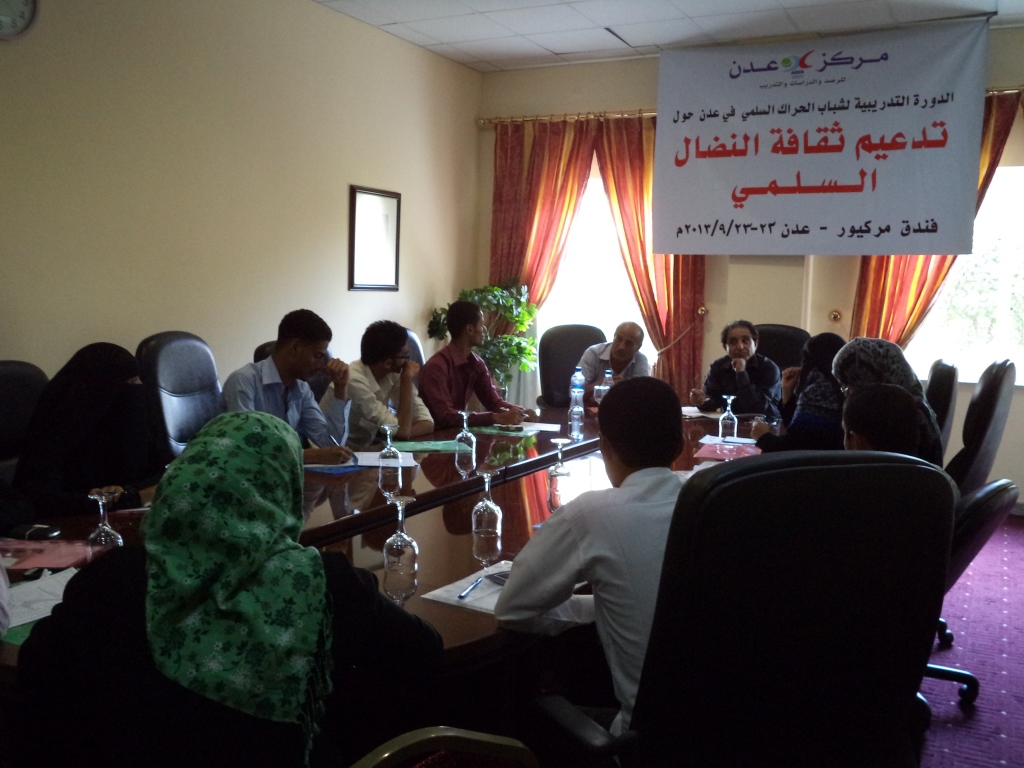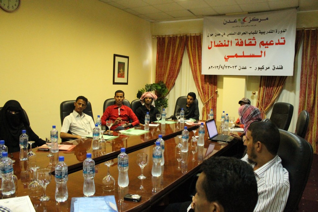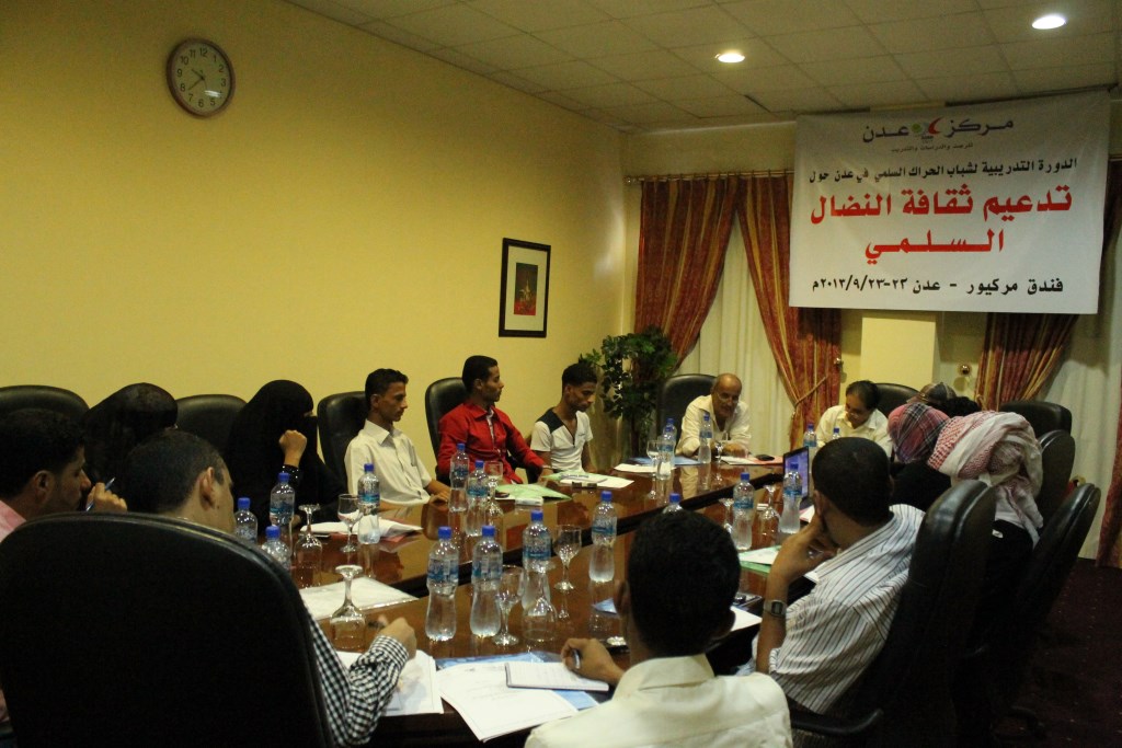 فيما يلي صور فعاليات الدورة التدريبية لشباب الحراك السلمي في عدن حول تدعيم ثقافة النضال التي عقدت في فندق ميركيور – عدن، خلال الفترة 22 – 23 سبتمبر 2013م
