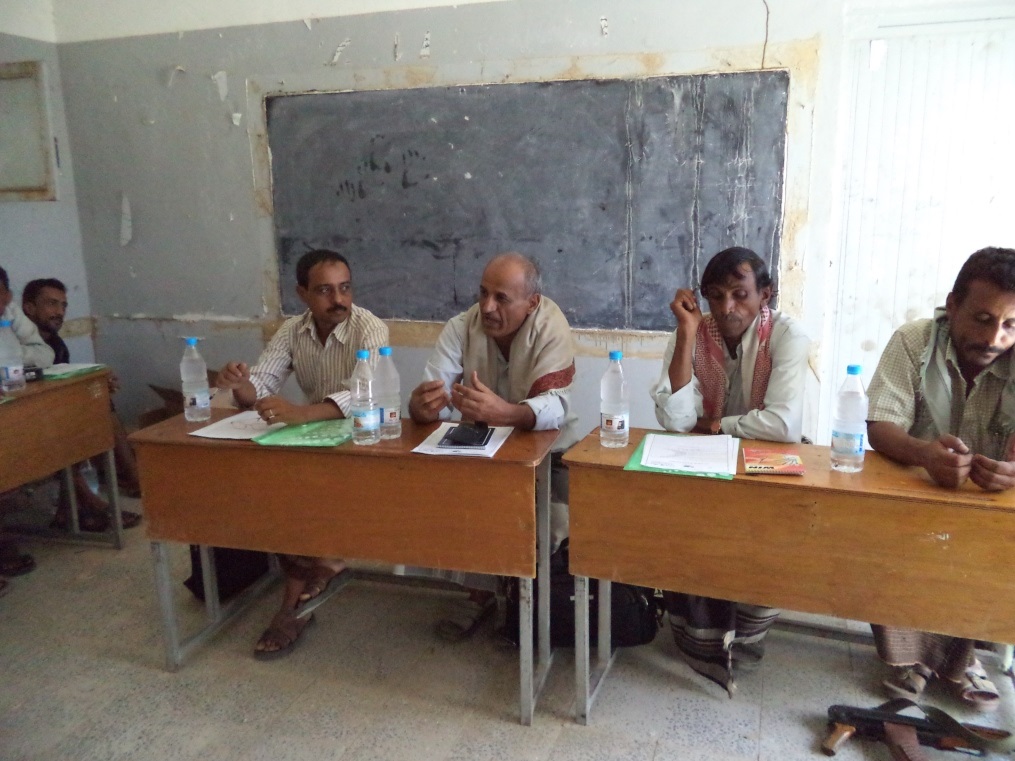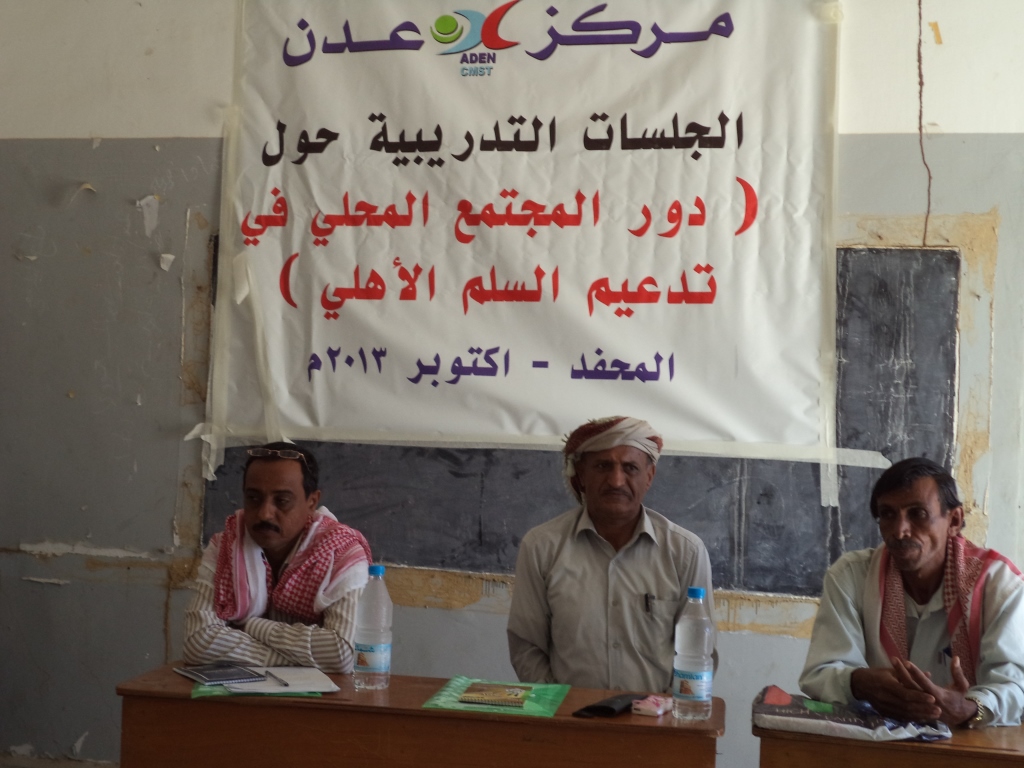 صور الجلسات التدريبية حول دور المجتمع في تدعيم السلم الأهلي التي نظمها المركز في مديرية المحفد بمحافظة أبين خلال الفترة 27 – 29 نوفمبر 2012م