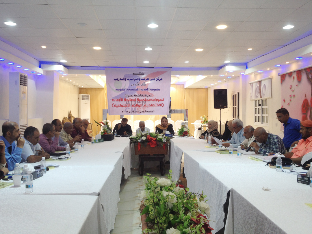 نظم مركز عدن للرصد والدراسات والتدريب بالشراكة مع مجموعة المبادرة المجتمعية الجنوبية صباح اليوم الثلاثاء الموافق 13/11/2018م في العاصمة عدن ندوة اقتصادية بعنوان ” تصورات مجتمعية لمعالجة الأزمات الاقتصادية, المالية, الاجتماعية” شارك فيها عدد من الاكاديميين والمتخصصين في مجال الاقتصاد والمال وشخصيات عامة وممثلين عن منظمات المجتمع المدني.